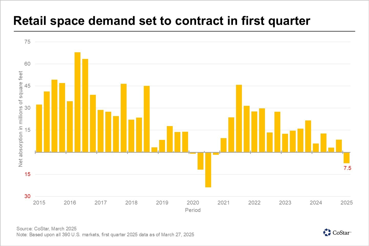 In total, demand for retail space has declined by nearly 8 million square feet since the start of the year, setting the stage for the first quarterly decline in net absorption, or the net change in occupancy, since 2020 and ending the sector’s 16-quarter streak of positive net absorption.